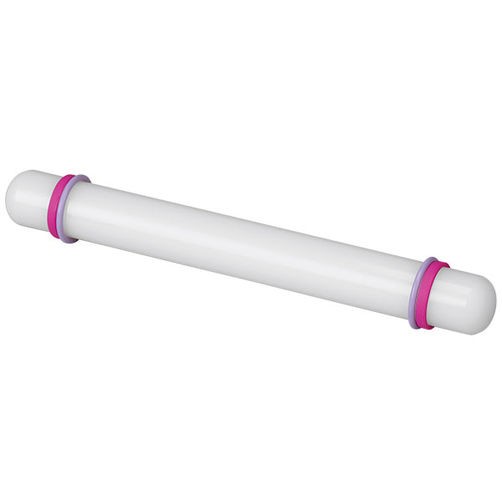 Roll out fondant evenly, at the perfect thickness for easy cutting and shaping, with this non-stick roller. Roll to the perfect 1/8 in. height used for cutting many fondant decorations, using the slide-on guide rings. This rolling pin is easy to handle—just the right size for preparing small amounts of fondant to place on your cake.