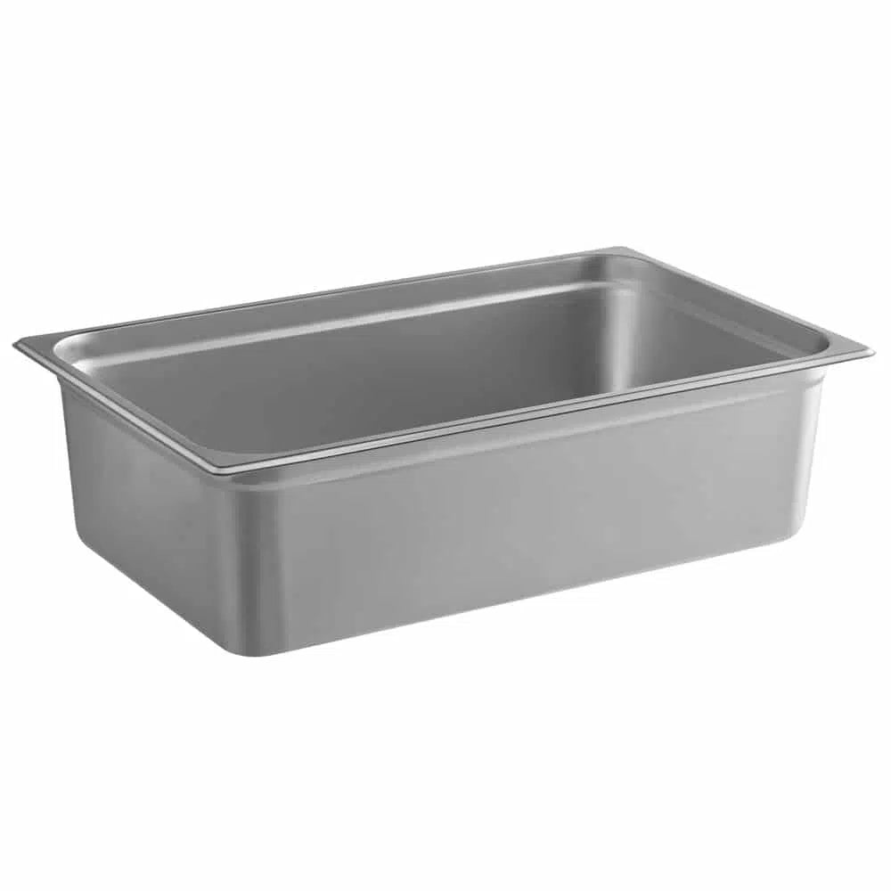 Commercial gastronorm steam pan constructed from heavy gauge stainless steel with anti-jam stacking lugs and reinforced corners. Suitable for cooking, storage, reheating and presentation in professional kitchens.