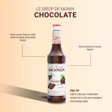 Le Sirop de MONIN Chocolate lets you enjoy the sweet, creamy decadence of chocolate in your beverages. Try it in hot drinks and frappes.