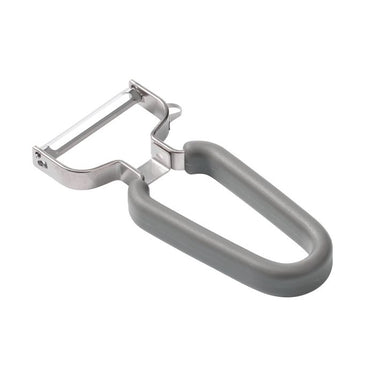 Y-shaped peeler with SUS420J2 stainless steel blade and 18/8 stainless steel frame. Ergonomic non-slip handle design accommodates both left and right-handed users.