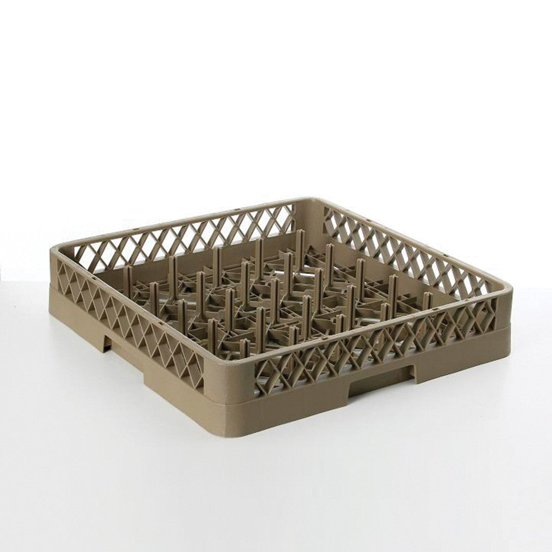 A durable and efficient dishwashing rack designed for commercial kitchens. Features 64 pegs to securely hold plates, trays, and platters, promoting fast drying and superior cleaning results.