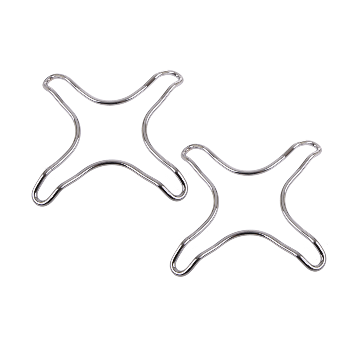 Chrome-plated ring reducers for gas stovetops. Creates stable surface for small pots, pans and espresso makers by reducing effective ring size and gas flame requirements.