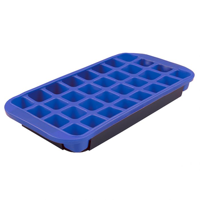 This flexible ice tray creates 32 large cubes per batch. The design combines a strong, supportive base with a flexible body that allows for easy ice release.