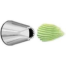Stainless steel piping tube with curved serrated opening. Creates ribbed borders, ruffles, and textured decorative elements.