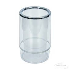 Transparent insulated wine cooler that combines visual appeal with practical function. Clear acrylic construction allows guests to see the bottle whilst keeping it perfectly chilled.